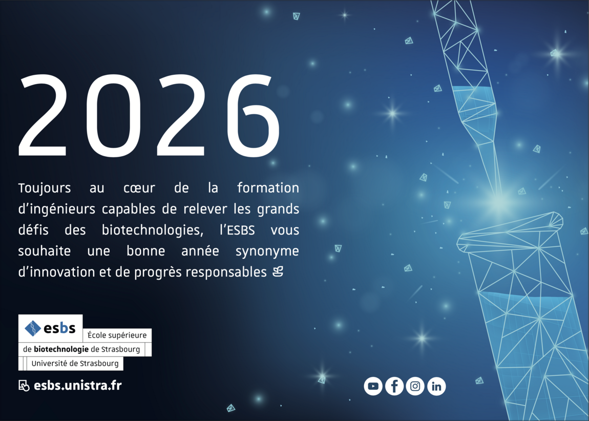 Immer im Herzen der Ingenieurausbildung, die für große biotechnologische Herausforderungen lösungsfähig bleibt, wünscht Ihnen die ESBS ein frohes neues Jahr, das von Innovation und nachhaltigem Fortschritt geprägt sein möge.